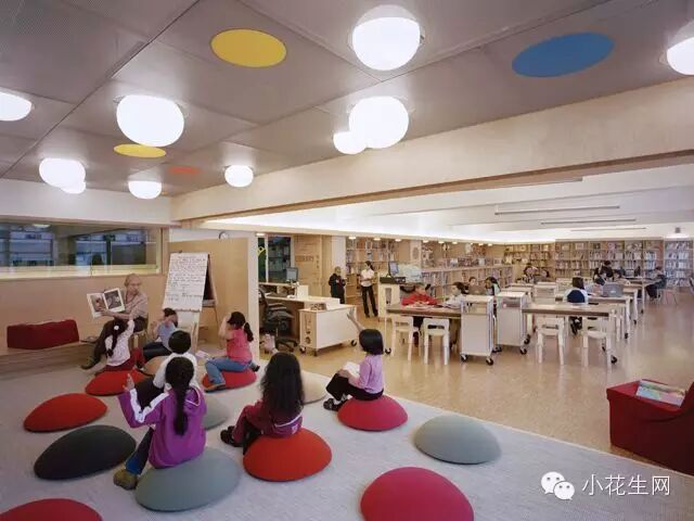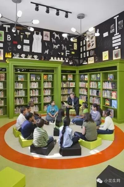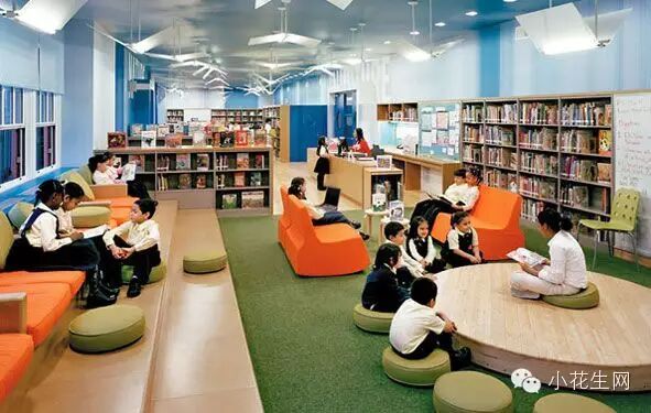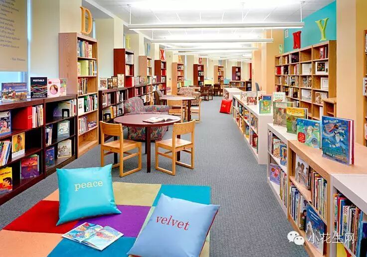 再来看看学校里的图书馆,这是美国一所公立小学的图书馆,可以读书,可以讨论,还能听老师讲故事