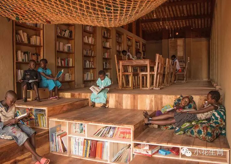 即使在非洲刚果,孩子们也有自己的图书馆,全部用原木搭造,很原生态