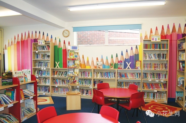 笔是画在墙上的,但是让这个图书馆的氛围一下子变得非常多彩、活泼,没准家里也能试试?