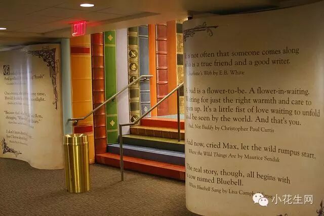 美国密苏里州圣路易斯儿童博物馆中的“神奇书屋”,楼梯是不是很有意思,上面写着美国小孩必读书的书名~