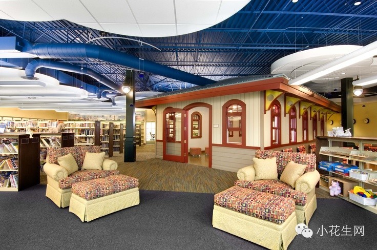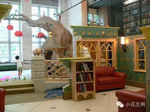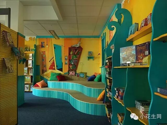 这是美国纽约州的一个儿童图书馆,色调很温暖,可以随手取书、读书,孩子和书一下子就有了亲近感